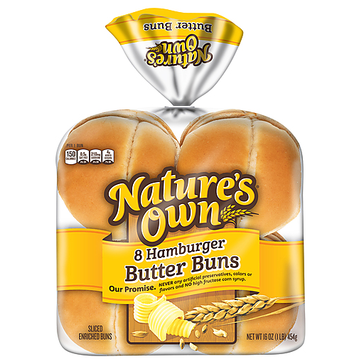 Impress all your friends and family at the next cookout and craft your best burger yet with Nature's Own® Hamburger Butter Buns. Formulated to hold up under the weight of a big, juicy burger and all the toppings, these buttery hamburger buns will perfectly complement your already-delicious burger. Plus, these burger buns are made with no preservatives, colors or flavors and no high fructose corn syrup, so you'll feel good about serving these delicious buns, whether it's with a homemade sloppy joe or a classic hamburger. Pile on the goodness and bring everyone together with Nature's Own breads, buns and rolls.