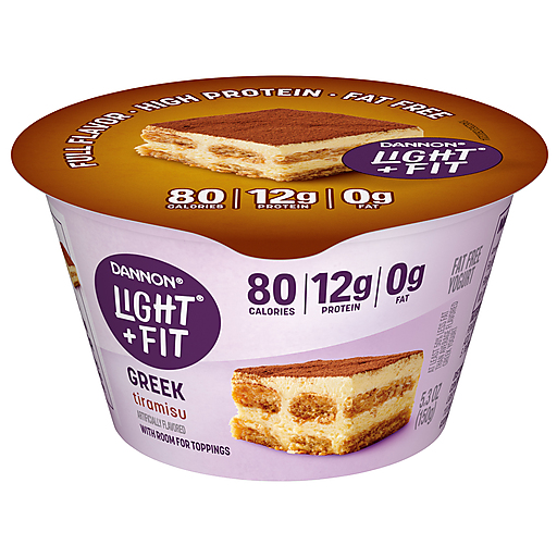 Looking for a delicious fat free yogurt with crave-able, sweet and creamy tiramisu flavor? Give your taste buds a reason to rejoice with Dannon Light + Fit Tiramisu Greek Fat Free Yogurt. Every bite of this tiramisu flavored yogurt makes it easy to enjoy fat free snacks with this delicious light yogurt brand.* At Light + Fit, our goal is to help you do you by serving up some delightfully creamy Greek yogurt with sensational flavor. Our fat free Greek yogurt comes in single-serve cups, so you can live your life uninterrupted and enjoy them on the go. Protein is an essential nutrient we need in our diets, and with 80 calories and 12g of protein per 5.3 ounce serving, this Light + Fit yogurt is a deliciously satisfying and convenient option for adding complete protein every day. Pack a cup and enjoy it as a snack cup at work or as a late-night snack. Add a 5.3 oz yogurt cup to your breakfast parfaits and smoothies or use some in your favorite recipes as a flavorful substitute for baking ingredients. Plus, these tiramisu flavored 5.3 oz yogurt cups are perfect to enjoy as a protein-rich dessert or treat for any time. Add flavor to your day, every day, with a single serving snack cup of Dannon Light + Fit Tiramisu Greek Fat Free Yogurt. *At least 50% less fat than average flavored Greek yogurt; Light & Fit: 80 calories, 0g fat; Average flavored Greek yogurt: 110 calories, 1g fat per 5.3 oz serving. **Consult your Healthcare Professional to learn how Light & Fit Greek yogurt can be included as part of a balanced diet.