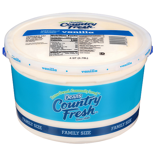 Dean's Country Fresh Reduced Fat Vanilla Ice Cream Pail delivers a premium ice cream experience so irresistible, you'll want to scoop up seconds. A timeless classic, boasting a smooth texture and a rich vanilla flavor, this frozen ice cream comes with a perfectly creamy texture. Made with only the finest ingredients, Dean's Country Fresh Ice Cream is made with care and quality, promising to bring joy to every occasion. Each 4-quart family size pail contains 24 servings, perfect for serving to a large group or sharing with loved ones. Dean's Country Fresh has been providing Midwestern families with the finest quality ice cream since 1946.