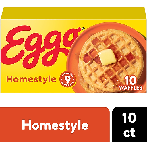 Wake up and greet the day with the feel-good taste of Eggo Homestyle waffles. Deliciously crispy and fluffy, our Eggo Homestyle waffles are crafted with delicious ingredients for a part of a quick and easy breakfast. Pop these frozen waffles in the toaster or oven for a delightfully crisp texture and an inviting, homemade taste. Feel good about what you're serving your family; 2 waffles provide a good source of 9 vitamins and minerals. Conveniently packaged and easy to prepare, Kellogg's Eggo Homestyle waffles help bring warmth and smiles to fast-paced, busy mornings. Great for families and individuals alike, these delicious, rich waffles are made to enjoy as part of a delicious breakfast. Try them with your favorite morning toppings such as butter and syrup, jellies and jam, peanut butter, hazelnut spread, fresh fruit, berries, whipped cream, and powdered sugar. They're just so delicious, would you L'Eggo your Eggo?