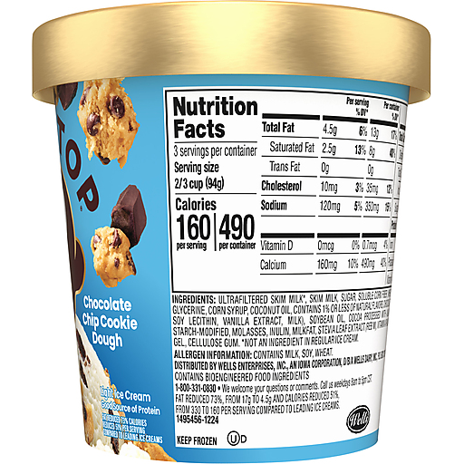 New Halo Top Chocolate Chip Cookie Dough light ice cream pint brings cookie dough into a delicious light ice cream experience that feels impossible to be only 490 calories per pint. Mouthwateringly smooth and creamy straight from the freezer, Chocolate Chip Cookie Dough light ice cream features layers of flavor, texture, and high-quality ingredients with every bite. This frozen treat starts with cookie dough light ice cream. It gets better from there, adding in large Rhino Bakery chocolate chip cookie dough and dark chocolate chunks to provide a wonderful pairing. A light ice cream like never before. Indulge without compromising on taste, Halo Top is packed with protein and has half the calories as compared to leading brands.