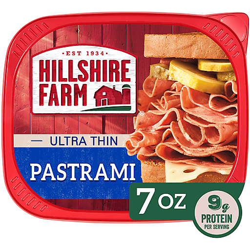 Bring the goodness of the farm to your table and experience the taste of a homestyle sandwich made with Hillshire Farm Ultra Thin Sliced Pastrami Sandwich Meat. Made with perfectly seasoned, cured beef, our pastrami is juicy, flavorful and 95% fat-free. Our farmhouse quality pastrami is made with no artificial preservatives or flavors, and no nitrates or nitrites added (except for those naturally occurring in the celery juice powder and sea salt). Try our sliced pastrami in a sandwich or wrap, on a salad or as part of a charcuterie board. Each 7-ounce package of Hillshire Farm Pastrami is double sealed for freshness and flavor. At Hillshire Farm brand, we are committed to the values of the farm, and we know that quality is always the most important ingredient. You can taste the generations of care and craftsmanship in every recipe because farmhouse values never go out of season.