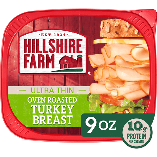 Can a sandwich crafted with delectably roasted cuts make your tastebuds quake with yearning? For Sure, It's Hillshire! Bring the goodness of the farm to your table and experience the taste of a homestyle meal on a sandwich with Hillshire Farm Ultra Thin Sliced Oven Roasted Turkey Breast Sandwich Meat. Our slow-cooked, oven-roasted, thin sliced turkey lunch meat is carefully crafted with the highest quality ingredients. Our farmhouse quality turkey breast is slow roasted for hours and made with no artificial preservatives or flavors, and no nitrates or nitrites added (except for those naturally occurring in the celery juice powder and sea salt). Try our gluten-free sliced turkey in a sandwich or wrap, on a salad or as part of a charcuterie board. Each 9-ounce package of Hillshire Farm Oven Roasted Turkey Breast is double sealed for freshness and flavor.