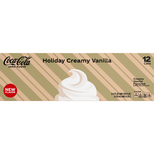 Coca-Cola Zero Sugar Holiday Creamy Vanilla Soda Soft Drink Fridge Pack Cans, 12 fl oz, 12 Pack