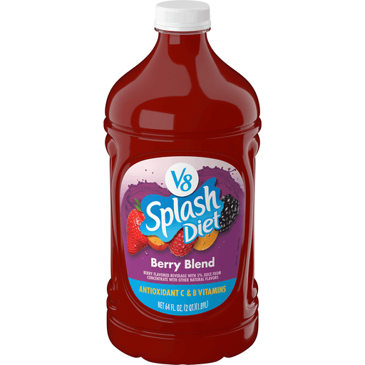 V8 Splash® Diet Berry Blend Flavored Beverage is a fruity burst of refreshment that the whole family can enjoy. Made with 5% juice, it's packed with berry flavors for a taste that feels like summer in every sip. With antioxidant Vitamin C and B vitamins, this drink is more than delicious—it also contains 25% less sugar than leading juice drink brands*.
