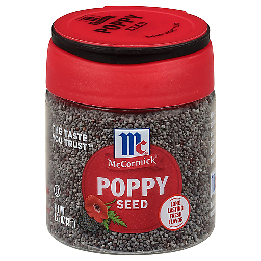 Native to the Mediterranean, the poppy plant produces showy, colorful flowers and tiny slate-blue seeds. At McCormick® our whole poppy seeds are selected for their nutty flavor and rich color- perfect for adding to breads, salad dressings and fruit. The appealing crunchy texture and mild nutty flavor make poppy seeds a favorite for sprinkling on rolls, pastries, pound cakes and cookies. Or stir them into the batter for breakfast muffins and pancakes. Poppy seeds add a pop of color when whisked into dressing for fruit, coleslaw or greens. Try poppy seed butter over noodles, rice, fish or potatoes. The seeds figure prominently in Eastern European, German and Turkish cuisines. Refrigerate or freeze your jar of poppy seeds to keep them fresh.