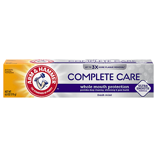 ARM & HAMMER™ Complete Care™ anticavity fluoride toothpaste is created with an ultra-smooth formula that provides whole mouth protection. Naturally powered by 100% pure baking soda, Complete Care goes beyond cleaning, giving you stronger, healthier teeth and gums. Unlike regular fluoride toothpaste, our pure baking soda formulas penetrate deeper throughout your mouth, REMOVING UP TO 3X MORE PLAQUE in hard-to-reach places.* Best of all, we do this gently, and are less abrasive than other toothpastes.