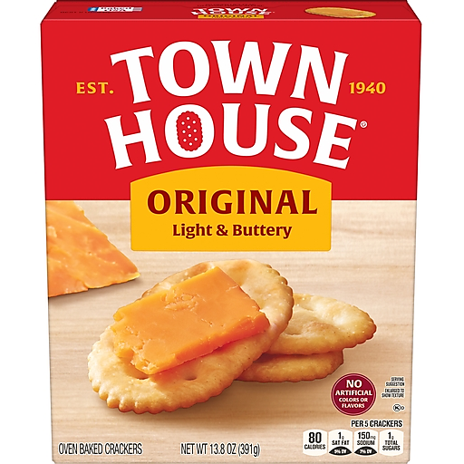 Light, buttery, and irresistibly crispy, Town House Original crackers are made for sharing. With a delicious oven-baked crunch and rich flavor in every bite, they’re a versatile pantry staple - perfect for everything from big celebrations to quick, easy snacks when friends drop by. Top them with cheddar cheese for a classic combination everyone loves. When company’s here, set them out with savory spreads and hearty dips. A trusted favorite since 1940, these crackers are the ideal centerpiece for party platters, appetizers, and game day snacks. Each cracker is baked in the USA and made with no artificial colors, flavors, or high fructose corn syrup. Top them with your favorite ingredients or whip together a quick tuna salad or spinach dip for crowd-pleasing snacks. Set out a plate and grab your favorite toppings. With Town House crackers, you’re ready to say “Come on in!”