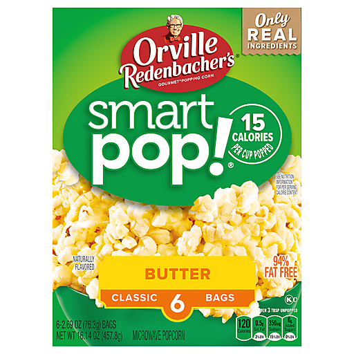 Orville Redenbacher’s Smart Pop! Butter Popcorn is a delicious 94% fat free premium microwave popcorn with 15 calories per cup popped for guilt-free snacking you can feel good about with every delicious bite. The perfect balance of butter flavor and salt is great when you’re craving popcorn. It is light and fluffy, with a delicious crunch. Orville Redenbacher’s Smart Pop! Butter Flavored Popcorn is made with 100% whole grain gourmet popcorn kernels and can be enjoyed as gluten free snacks. Made with only 100% real ingredients from natural sources, this popcorn snack contains no artificial preservatives, no flavors and no dyes (colored with annatto, turmeric and paprika). Ready in minutes, simply follow the directions on the microwavable popcorn bags for warm, freshly popped popcorn anytime you want. Enjoy this Orville Redenbacher’s butter popcorn as TV and movie snacks, for game nights or anytime popcorn cravings strive for delicious salty snacks. It’s the perfect microwave popcorn to add a pop of fun to every occasion. Can’t get enough popcorn? Explore Orville Redenbacher’s other microwave popcorn flavors, popcorn seasoning and kernels for a gourmet popcorn experience. Orville Redenbacher’s isn’t just a name, it’s a promise of excellence and authenticity.