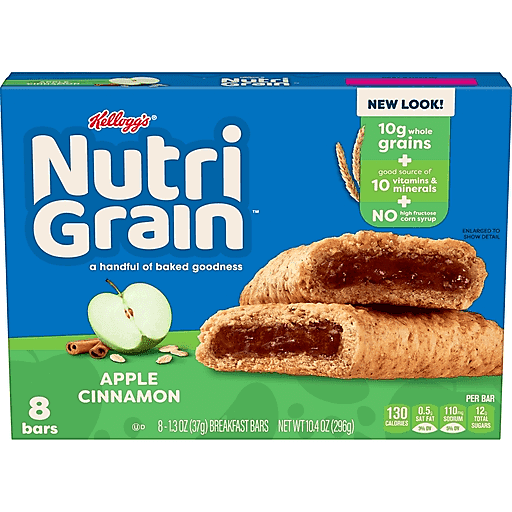 Nutri-Grain breakfast bars are your go-to for a handful of baked goodness! Made with 10g of whole grains, these deliciously simple bars help empower the whole family to win the day. They’re made with a tasty, chewy crust that holds yummy, sweet apple cinnamon-flavored filling inside. Each breakfast bar contains 10 vitamins and minerals per serving, including a good source of calcium and iron, and has no high fructose corn syrup; Grab one in the morning, as an afternoon snack, or on the go. With delicious flavor and feel-good ingredients, they’re a wholesome snack for any time of day. Pack these portable snacks for the bus on the way to school, add a few bars to your work bag for an office snack, and stock your pantry for convenient, crave-worthy snacks for the whole family. Grab a bar for flavorful energy matched up with an irresistible taste that everyone loves. With these perfectly baked snack bars, you’ll be prepared for whatever the day brings.
