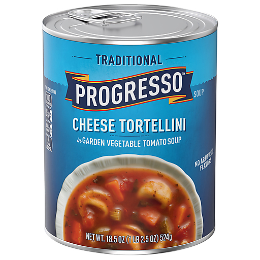 Indulge in the taste of Progresso Traditional Cheese Tortellini in Garden Vegetable Tomato Soup. This delicious, decadent canned soup contains mouthwatering cheese tortellini in a tomato based vegetable soup made with chunky, tender vegetables like zucchini, carrots and celery. This soup has 1/2 cup vegetables per serving. Serve it with a sandwich or a side salad as part of a quick and easy weekday meal. Heat up this microwavable soup in minutes. This comforting, cozy tortellini tomato soup is made with no artificial flavors or colors from artificial sources. Just the taste you expect from Progresso.
