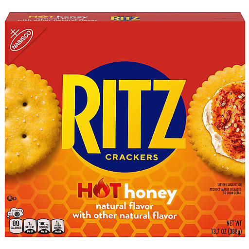 RITZ Hot Honey Crackers are a flaky, delicious snack with a rich, buttery, hot honey flavor. With their wonderfully bold, sweet and spicy flavor, these RITZ Crackers provide a creative canvas for a variety of toppings. Spice up your picnic or barbecue by topping these snack crackers with pulled pork, coleslaw, and a jalapeno slice. Or add these buttery crackers to a charcuterie board with soft and hard cheeses, fresh fruit, and guacamole. Whether it’s a formal event or a casual get-together with friends, RITZ is a rich, buttery cracker that invites sharing because it welcomes every person, flavor and pairing, making these tasty round crackers a fantastic snack food or appetizer for any occasion. So keep these delicious and buttery RITZ crackers on hand for anytime you're in the mood for salty snacks. Each box contains individually wrapped sleeves of crackers to lock in freshness and flavor.