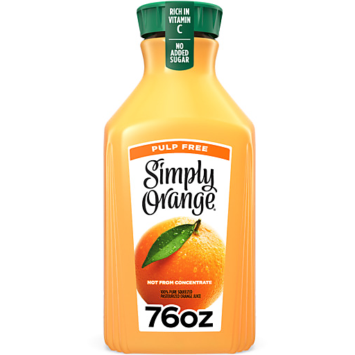 For Simply Orange Pulp Free, we carefully select real, ripe oranges and turn them into a deliciously simple pulp-free orange juice. Not from concentrate for a deliciously fresh-squeezed taste.