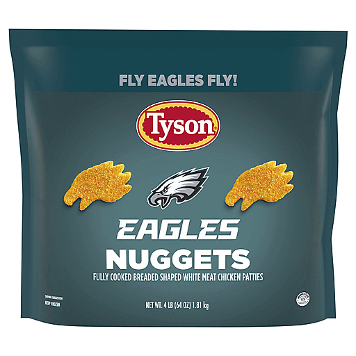 Fly Eagles Fly! Inspired by the team that knows how to fly high, Tyson Eagles inspired Chicken Nuggets are the perfect bite-sized snack for every game day moment. Crispy on the outside and tender on the inside, each eagle head-shaped nugget delivers bold, savory flavor that keeps the celebration going from kickoff to final whistle. Just prepare in the air fryer, oven, microwave, or deep fryer according to the directions to get crispy golden breaded nuggets that are as bold as the City of Brotherly Love itself. Help fuel up for game day, Fly Eagles Fly!—each serving packs 12 grams of protein. Whether you're hosting a watch party, tailgating with friends, or cheering from the couch, these nuggets bring the perfect mix of taste and team pride. Made for fans who show up loud, proud, and hungry, Eagles inspired Nuggets are more than just a snack—they're your new game day tradition.